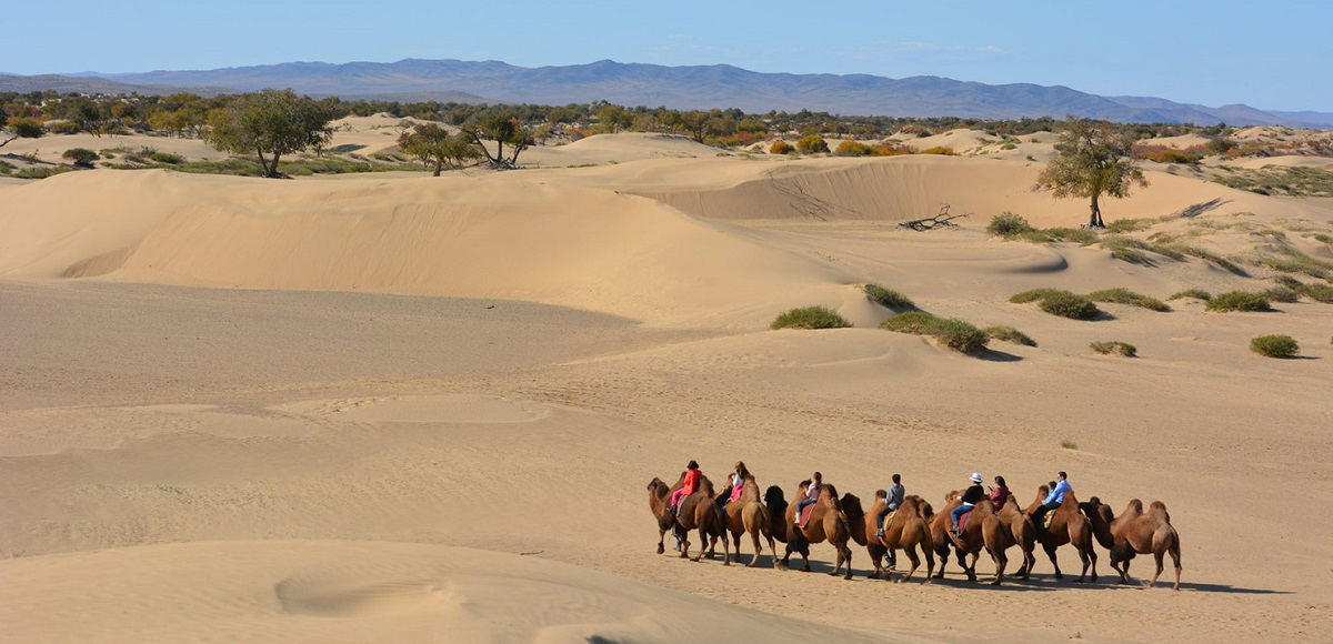 Travel to the beautiful Elsen Tasarkhai dunes, a unique stretch of desert surrounded by steppe and mountains. Enjoy a peaceful camel ride across golden sands and take in Mongolia's dramatic landscape contrasts. Overnight in a ger camp surrounded by serene desert silence.